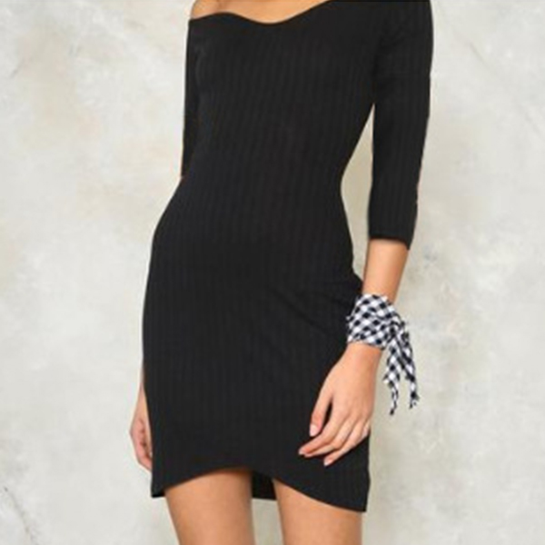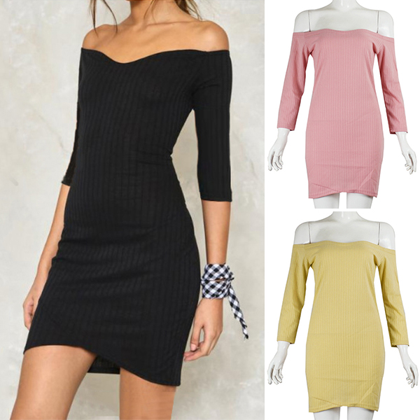 Solid color style,designed and an off-shoulder wide neckline,half sleeve and a fit silhouette,this dress knows how to