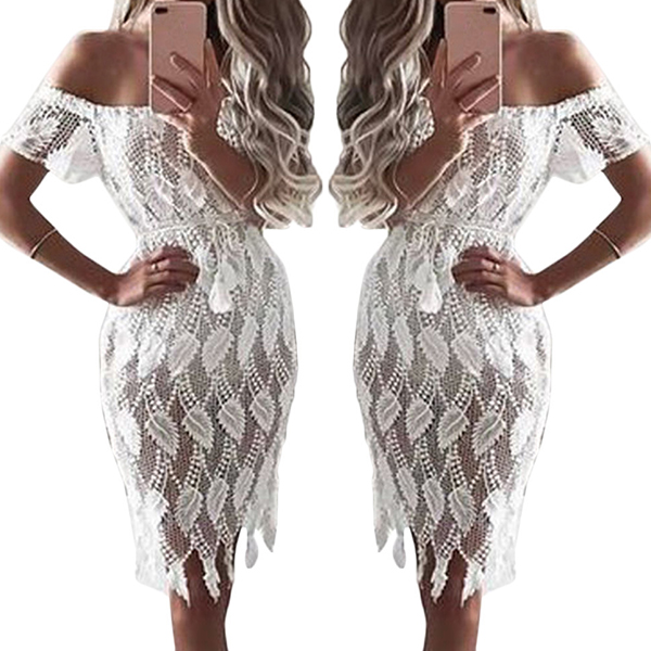 Hollow out lace style,designed with an off-shoulder wide neckline,high waist and a fit silhouette,