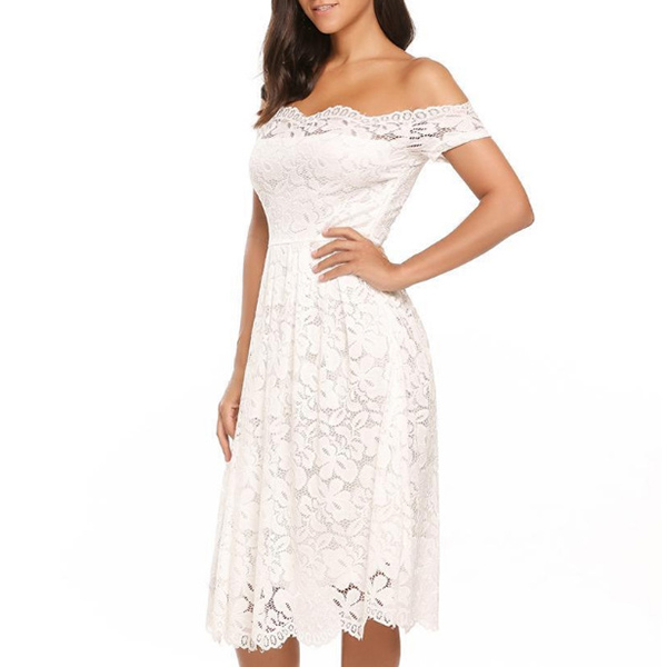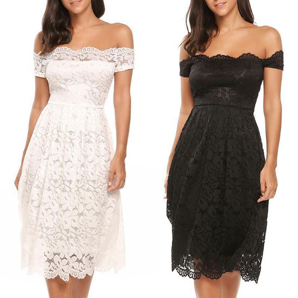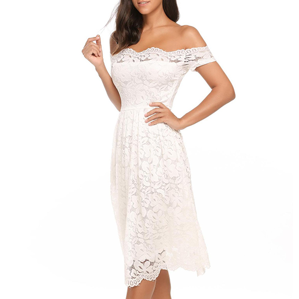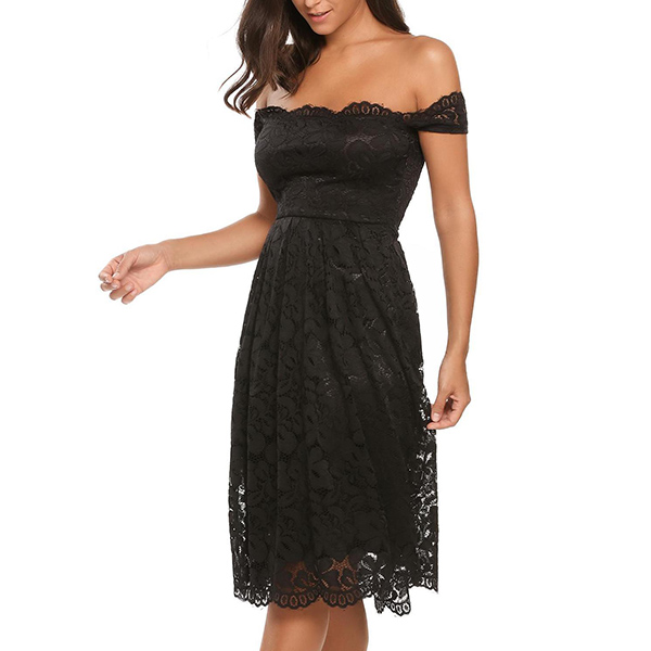 You can maintain your alluring feminine appeal in this lace dress, that's why we suggest it to you! The high waist and clean silhouette design can showcase your slender figure,while the off-shoulder boat neck design gives you the chance to show off your charming shoulder and seductive collarbone. At this time,adding a choker necklace would make you look more beautiful!
