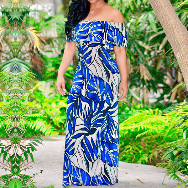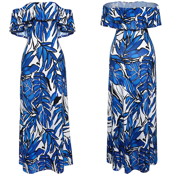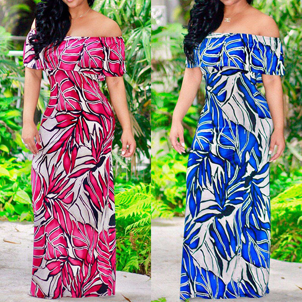 Boasts vivid and vibrant floral print,accompanied with an off-shoulder wide neckline and a maxi length,sexy and sultry.