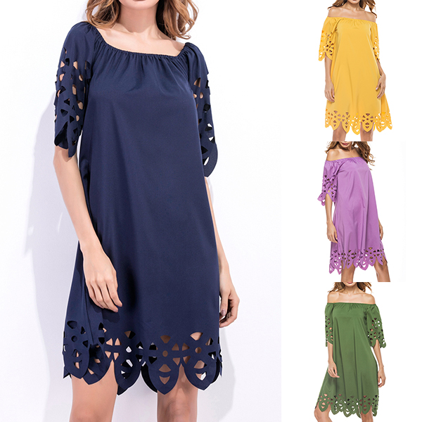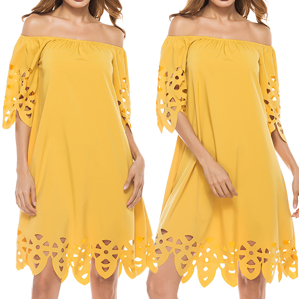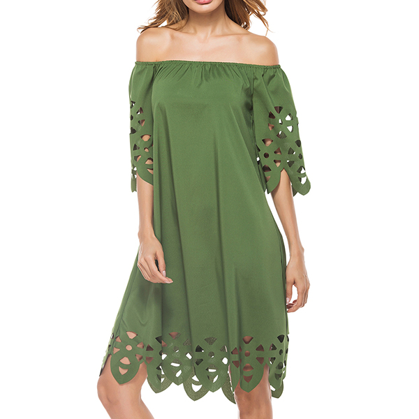 off-shoulder wide neckline and hollow out details,sexy and chic,while its soft,breathable fabric and loose silhouette