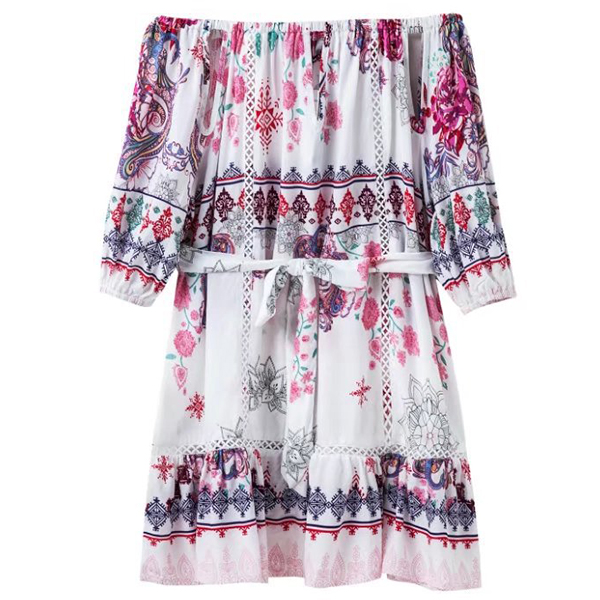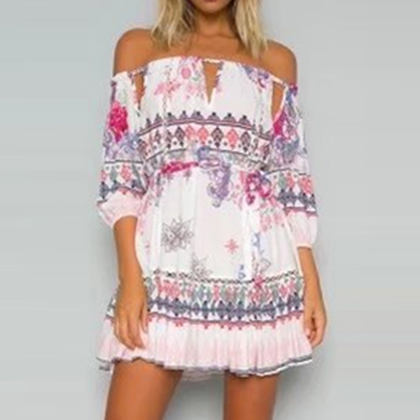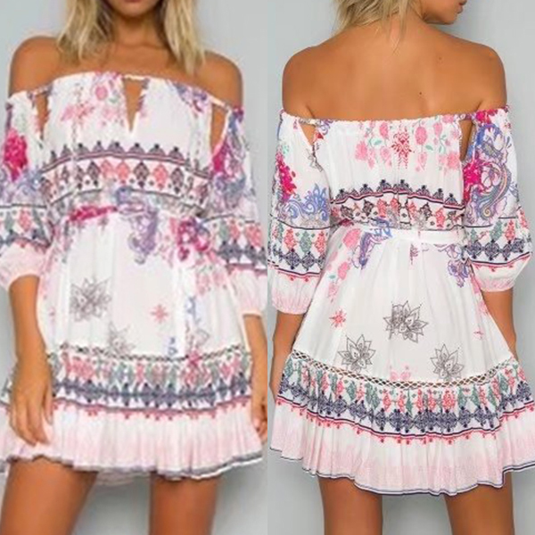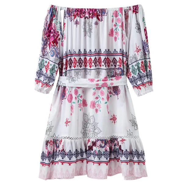 Features chic and eye-catching printed pattern,its off-shoulder wide neckline design adds some sexy and feminine