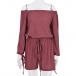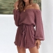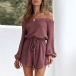 Sexy Off-shoulder Boat Neck Lantern Sleeve Drawstri8ng Waist Romper