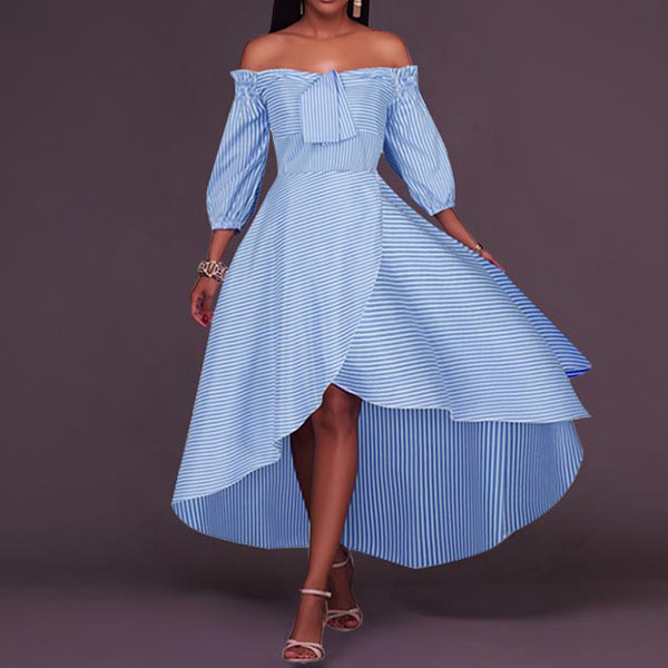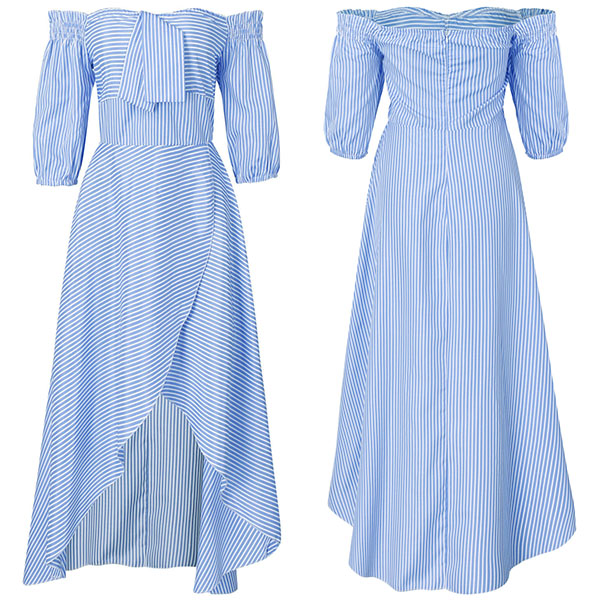 designed with an off-shoulder wide neckline,lantern sleeve and an irregular hem,sexy and alluring.