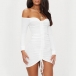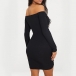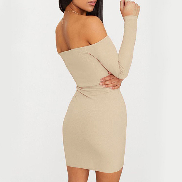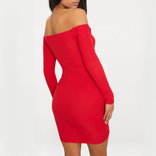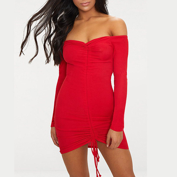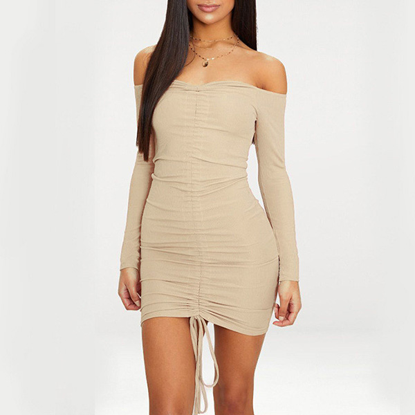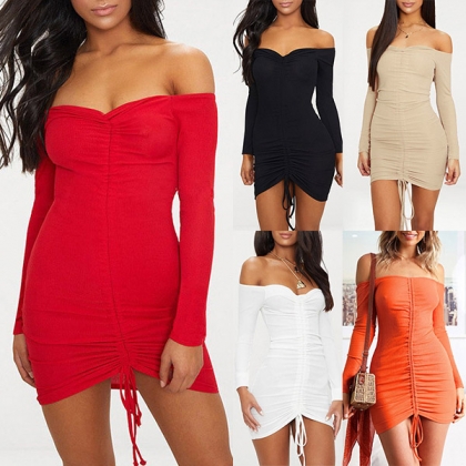 Sexy Off-shoulder Boat Neck Long Sleeve Drawstring Tight Dress
