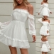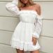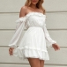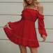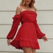Sexy Off-shoulder Boat Neck Long Sleeve High Waist Dress