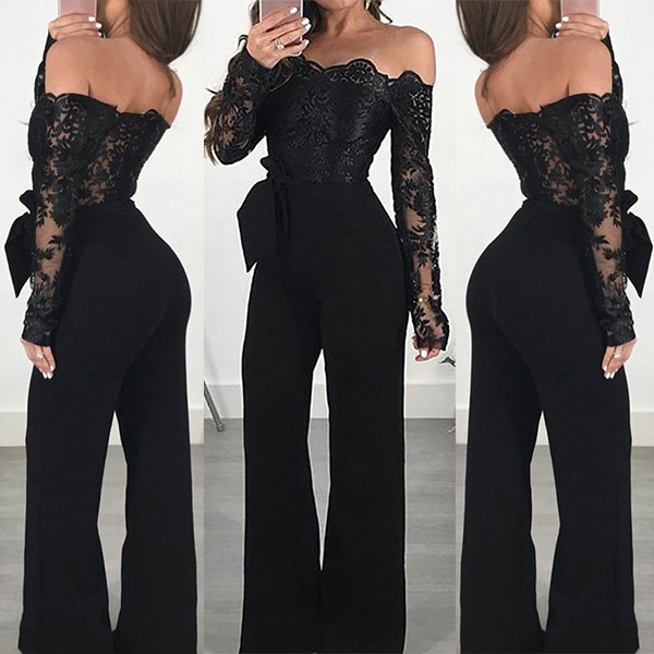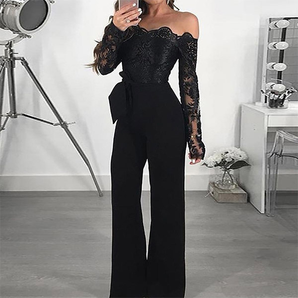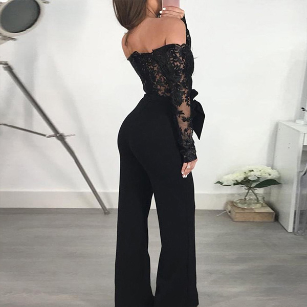 You can captivate more hearts and minds with the flirty style of this jumpsuit. The off-shoulder boat neck and lace spliced design can better exude your femininity and charm,while the high waist and fit silhouette design will showcase your slender figure. For your fancy events,you can just slip into this piece to win more eyes.