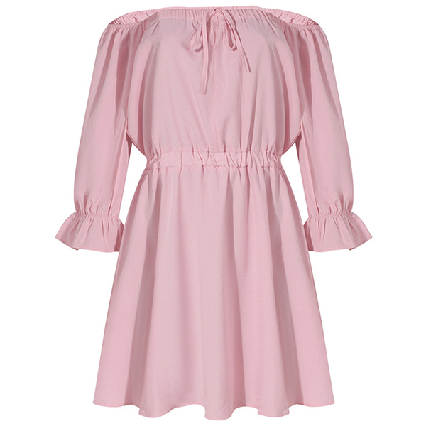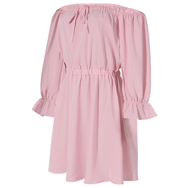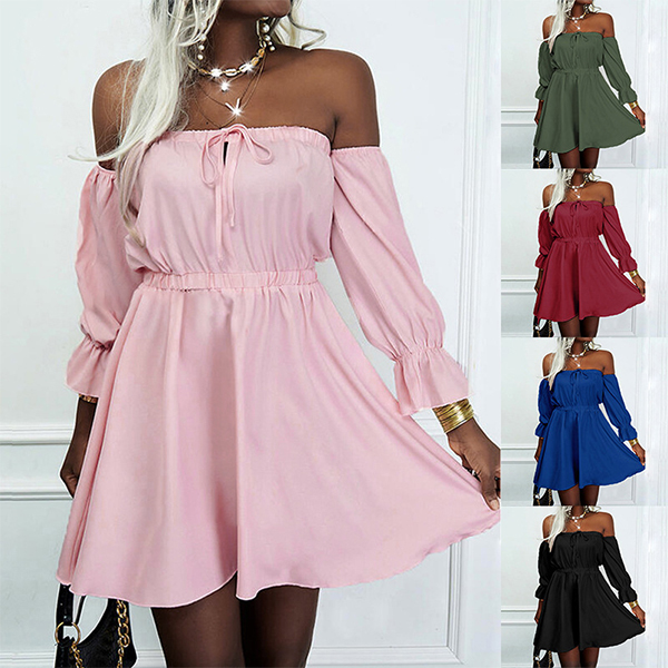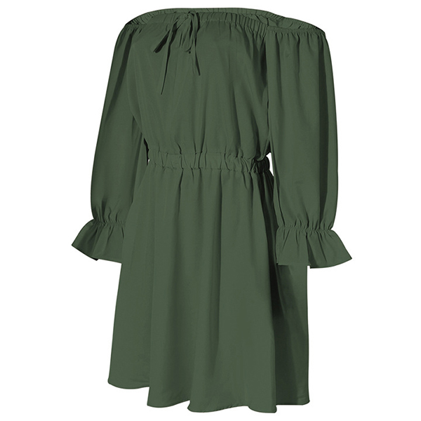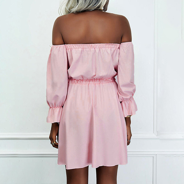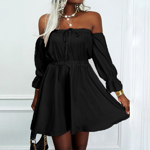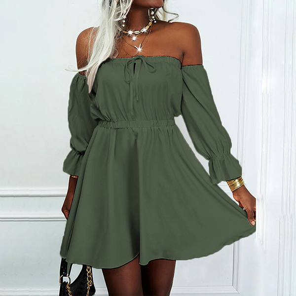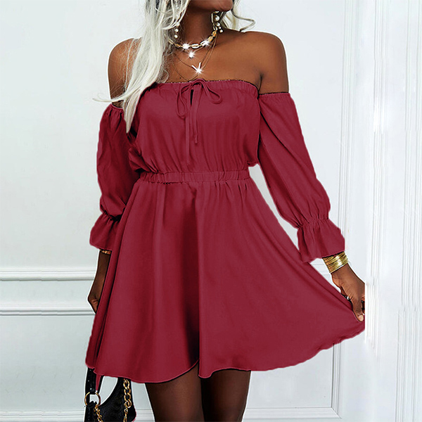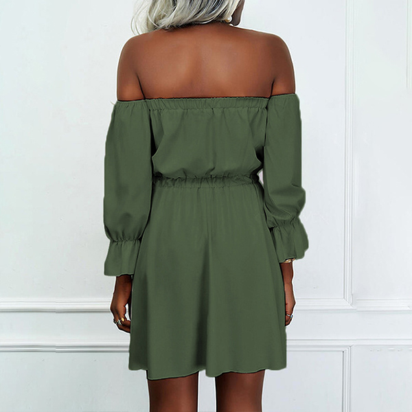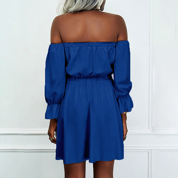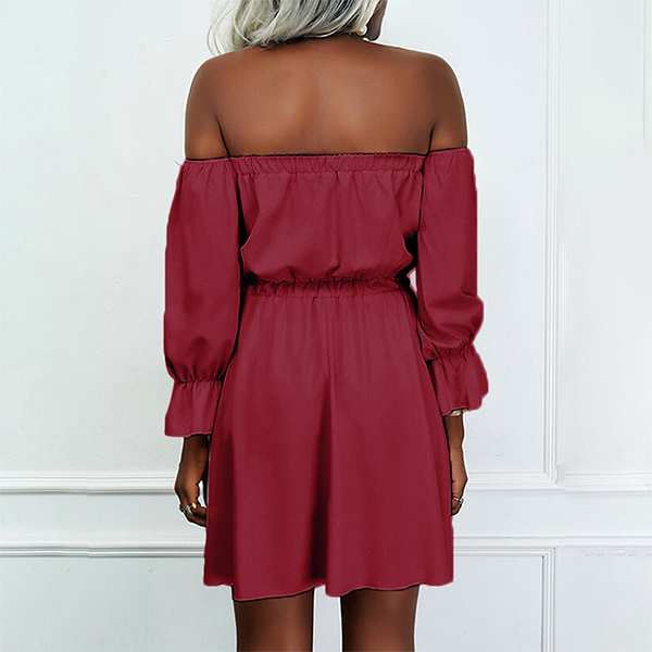 Sexy Off-shoulder Boat Neck Long Sleeve High Waist Solid Color Dress