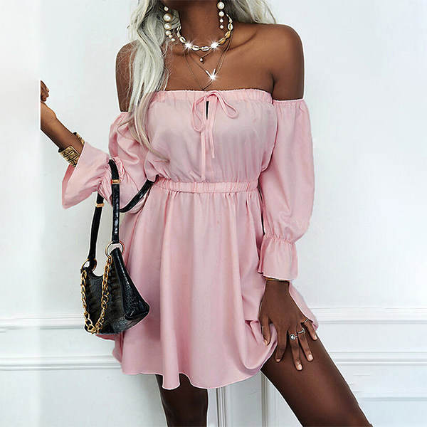 Thanks to the off-shoulder boat neck design,this dress is a good chance for you to expose your charming shoulder and seductive collarbone. Solid color style,the high waist design can help showcase your slender figure. If adding a choker necklace,you can look more beautiful and charming!