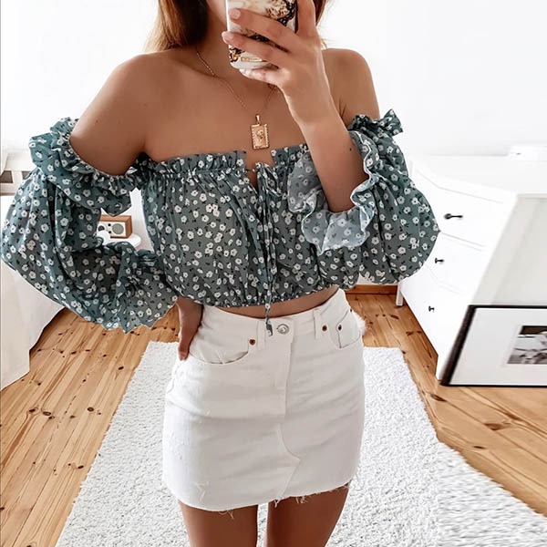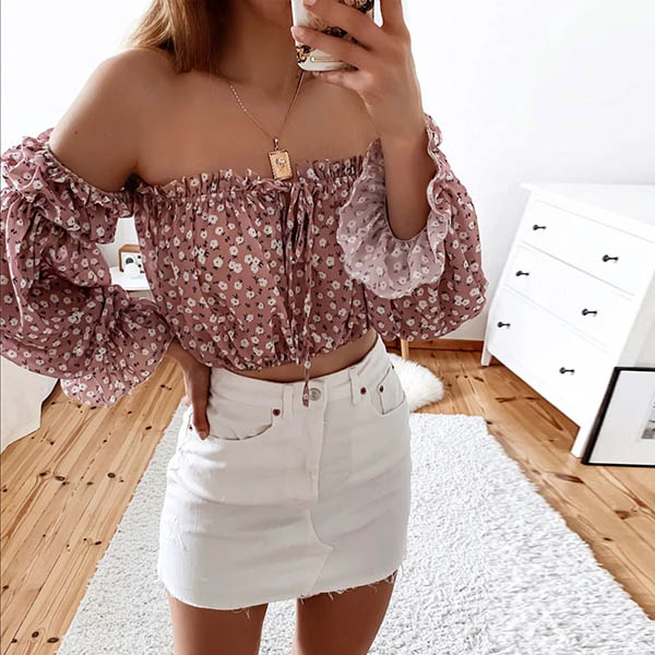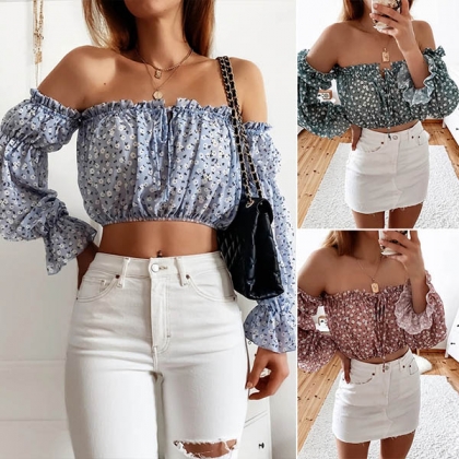 Bright up your day with this wonderful crop top. Its vibrant floral print details make this piece look so eye-catching and stylish. Finished with long sleeve and boat neck design,this top can exude your sexy and flirty vibes. You can add a choker necklace for a more beautiful look. Try to match with a high waist shorts to finish a charming daily look.