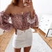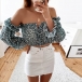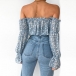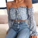 Sexy Off-shoulder Boat Neck Long Sleeve Printed Crop Top