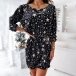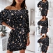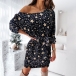 Sexy Off-shoulder Boat Neck Long Sleeve Printed Dress