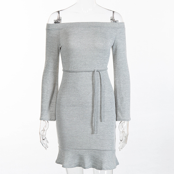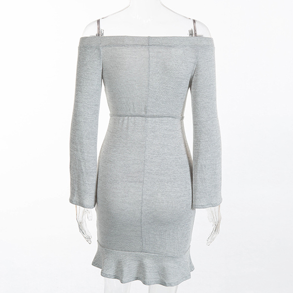 Sexy Off-shoulder Boat Neck Long Sleeve Ruffle Hem Slim Fit Dress
