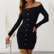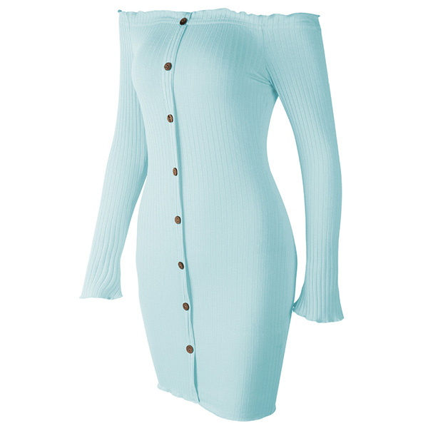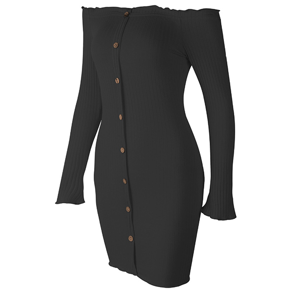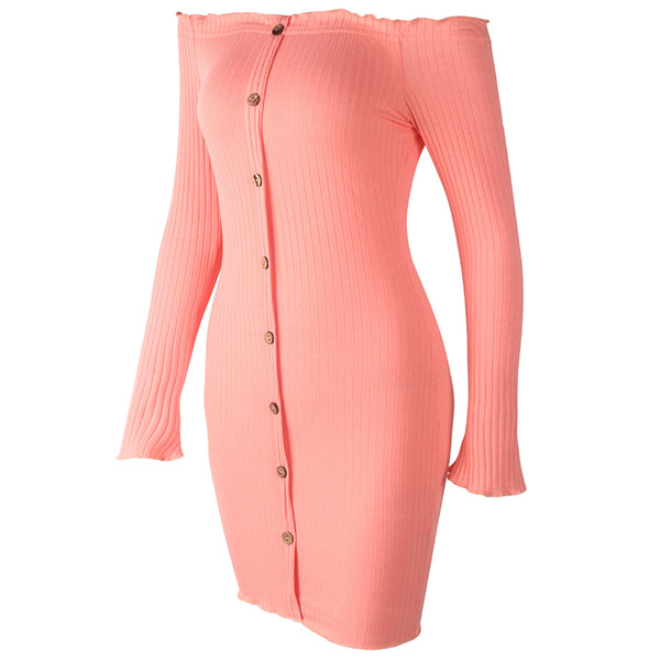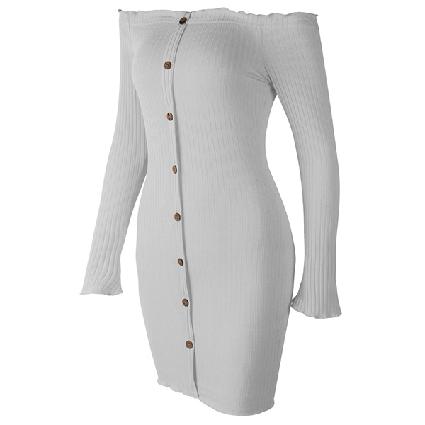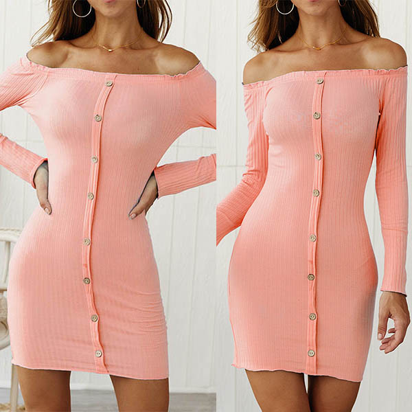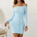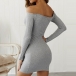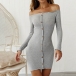 Sexy Off-shoulder Boat Neck Long Sleeve Slim Fit Dress