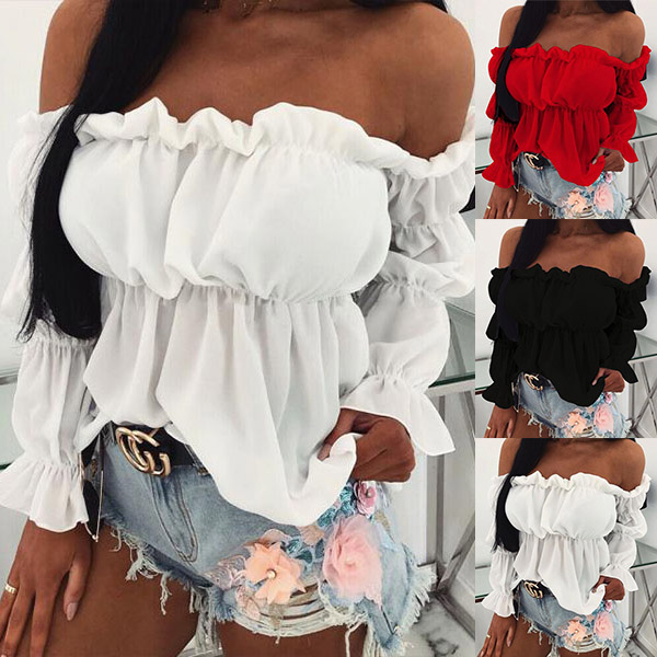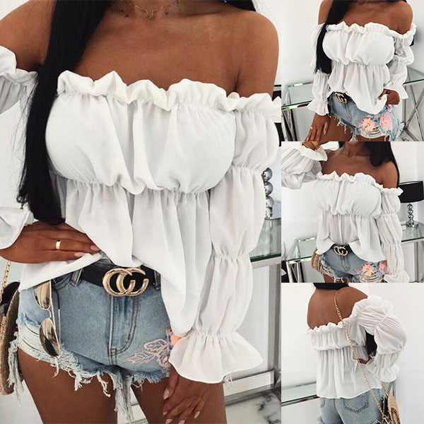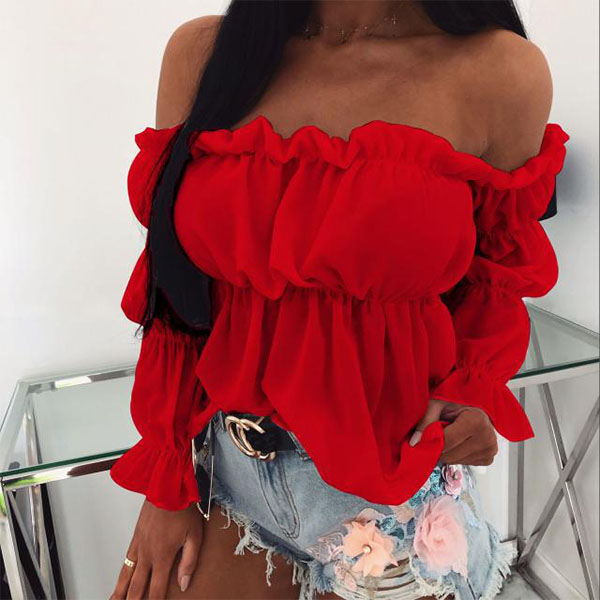 When you wanna boost your charm and upgrade your style,you can just have a try this blouse. It boasts a solid color,the off-shoulder boat neck design can lend you a dash of chic and sexy vibes. Unique waist design will further enhance its charm. You can match with a choker necklace to achieve for a more beautiful look.