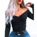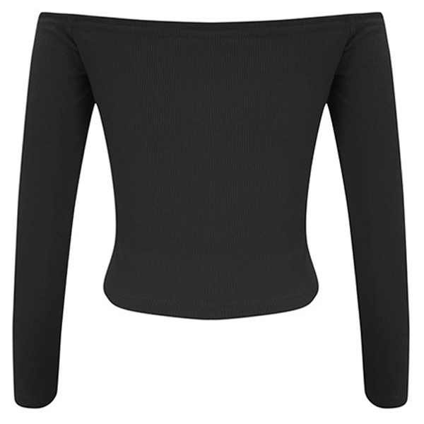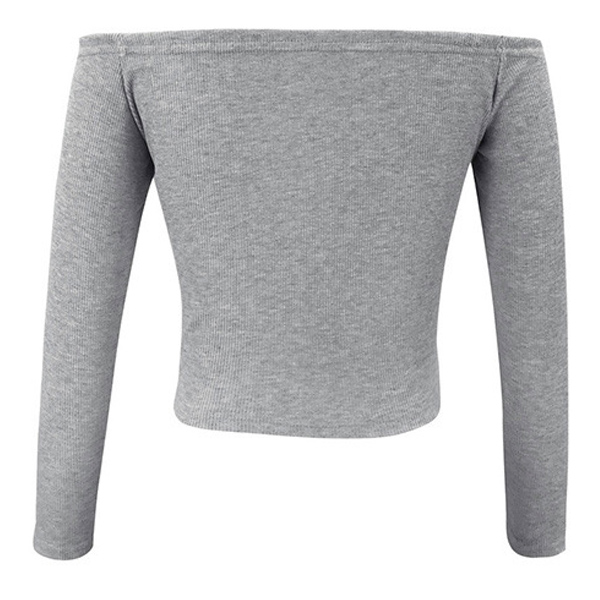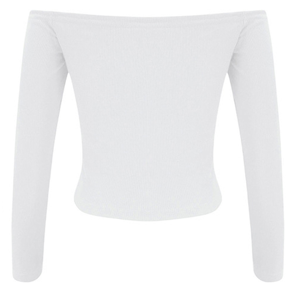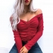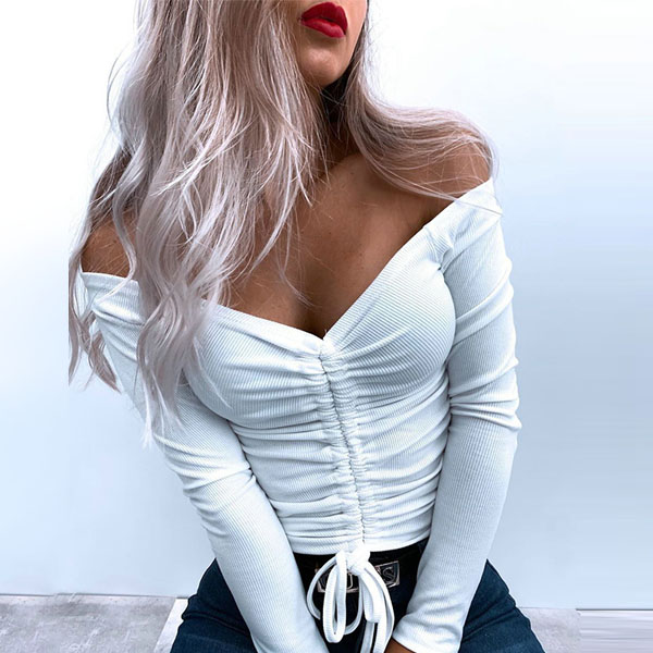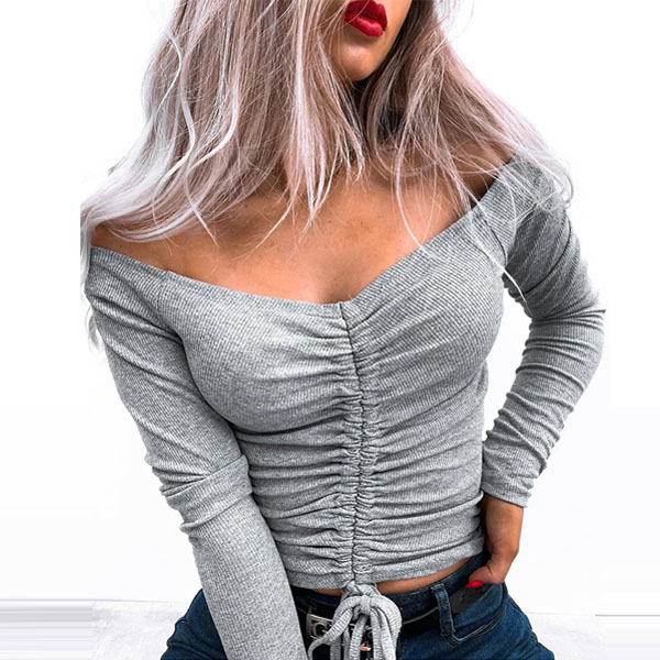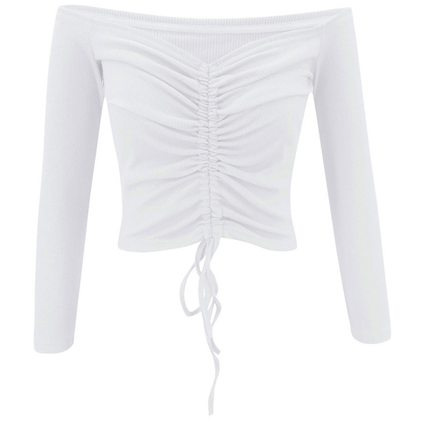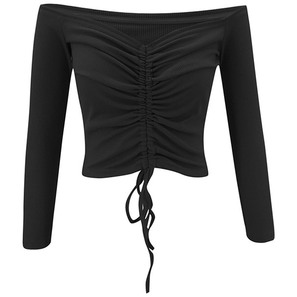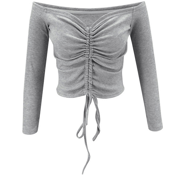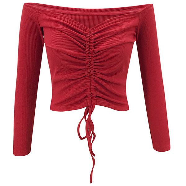 Sexy Off-shoulder Boat Neck Long Sleeve Solid Color Drawstring Top