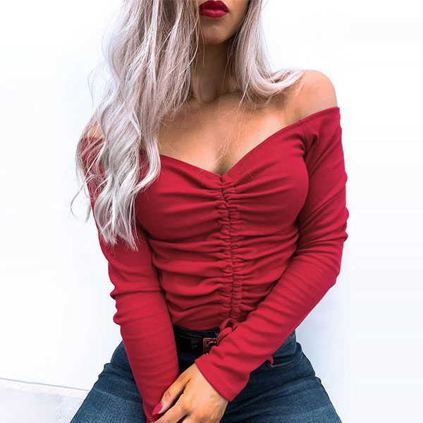 Inject a dash of sexy and flirty vibes to your wardrobe with this wonderful top. It comes with a solid color,the off-shoulder boat neck and drawstring design will make this piece look more attractive. We suggest you matching with a high waist pants to have a wonderful day.