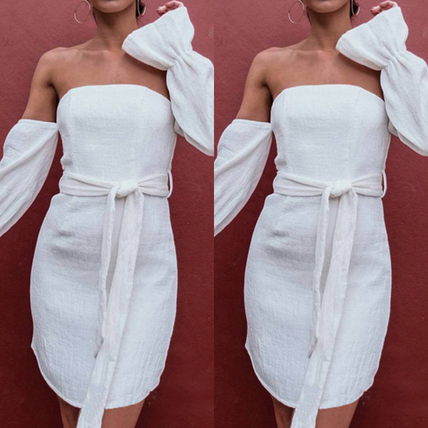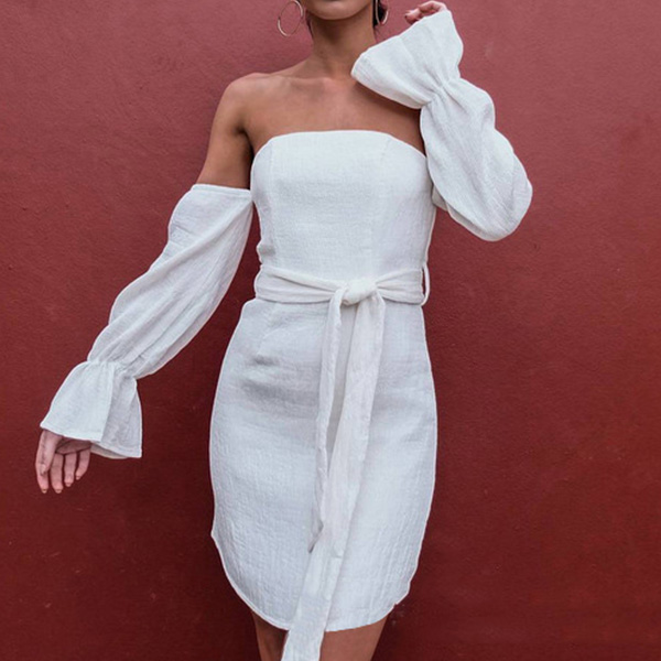 Solid color style,designed with off-shoulder,long sleeve and a fit silhouette,sexy and seductive. Comes with a waist strap