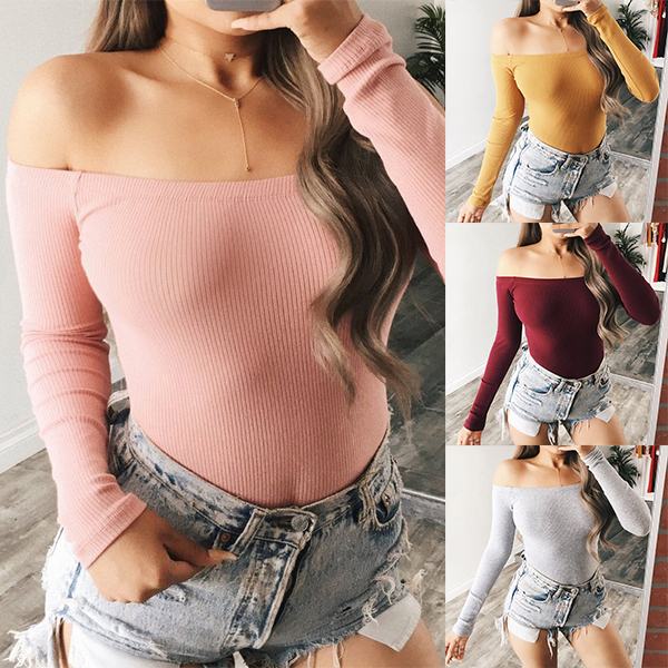 Solid color style,crafted from soft and breathable knitted fabric,accompanied with an off-shoulder wide neckline and
