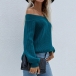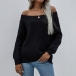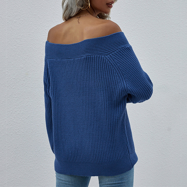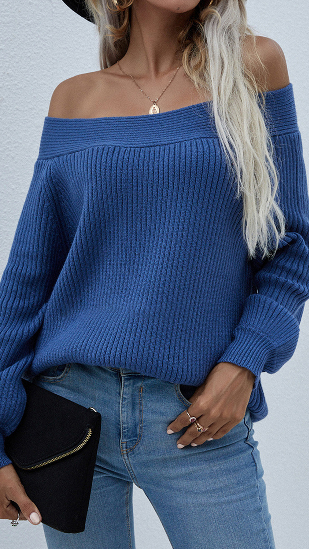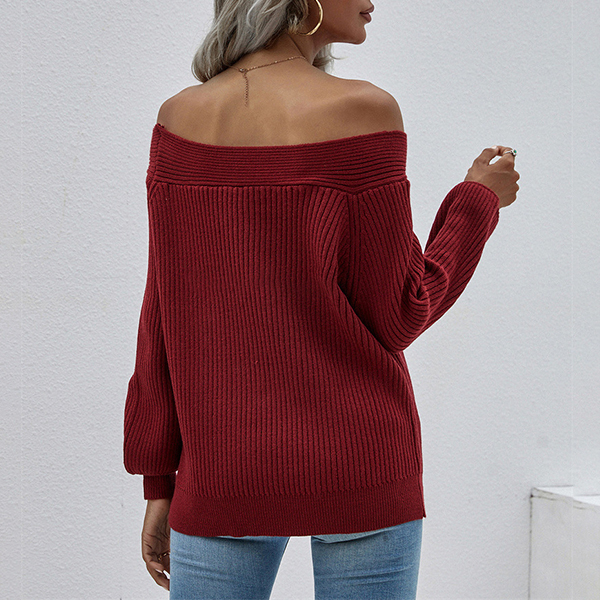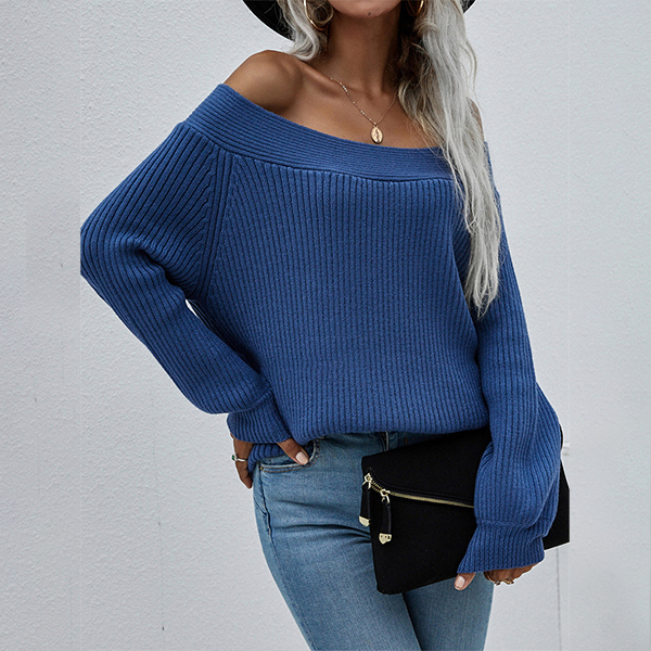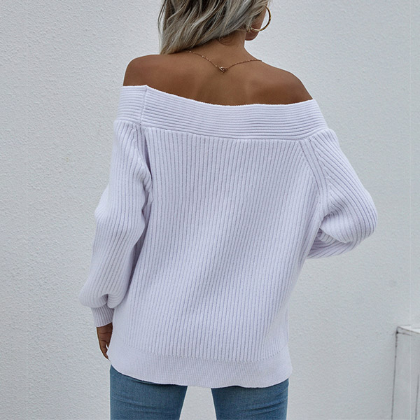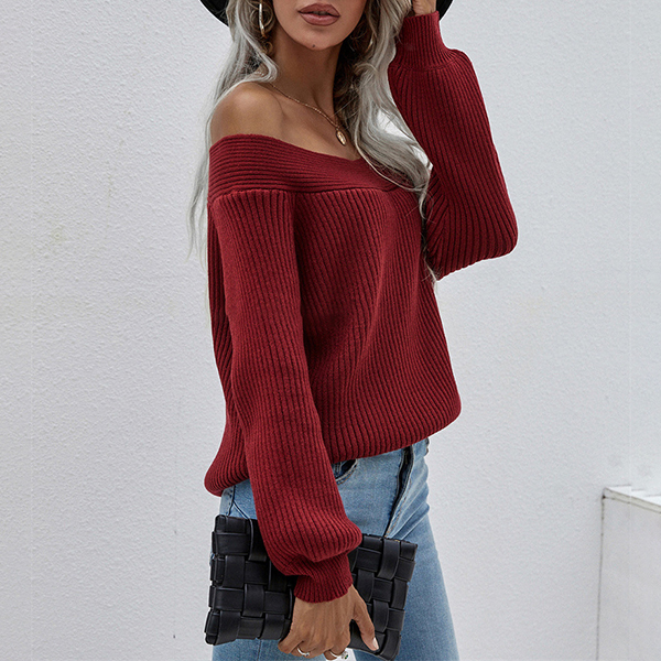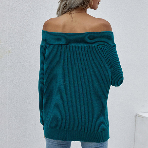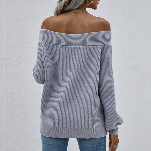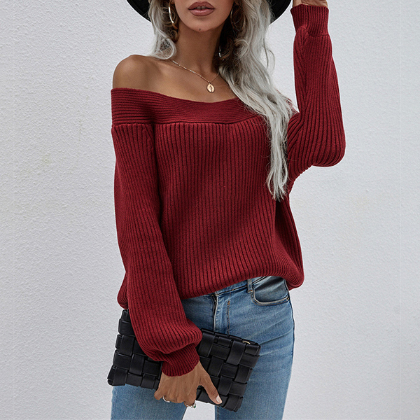 This sweater that combines of stylish and flirty vibes is worth to have a place in your wardrobe. Crafted in a solid color,the off-shoulder boat neck design gives you the chance to showcase your charming shoulder and seductive collarbone. When you wanna boost your entire charm,you can consider adding a sparkle sweater necklace or a choker necklace.