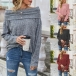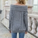 Sexy Off-shoulder Boat Neck Long Sleeve Solid Color Knit Top
