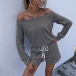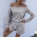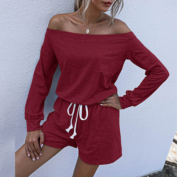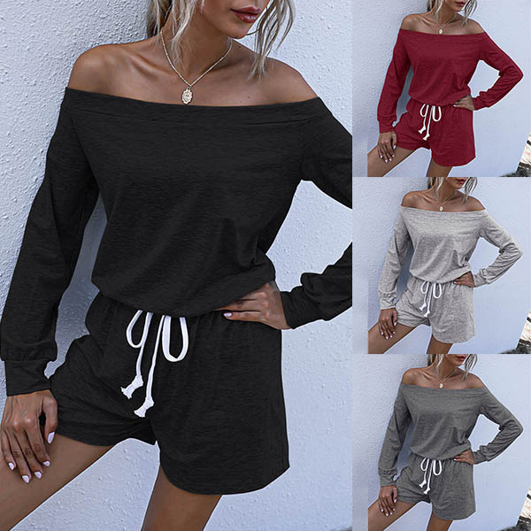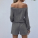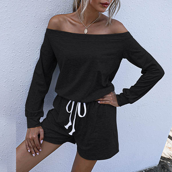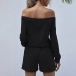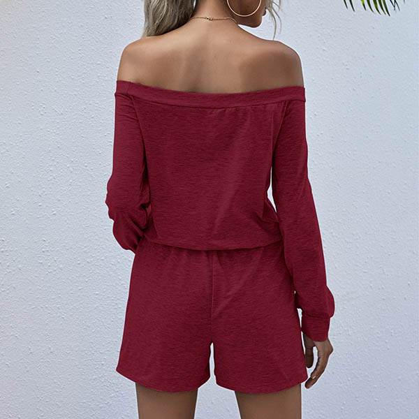 Sexy Off-shoulder Boat Neck Long Sleeve Solid Color Romper