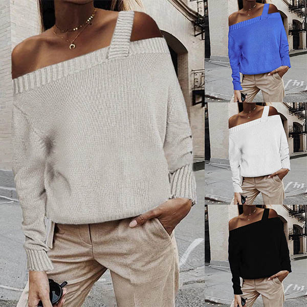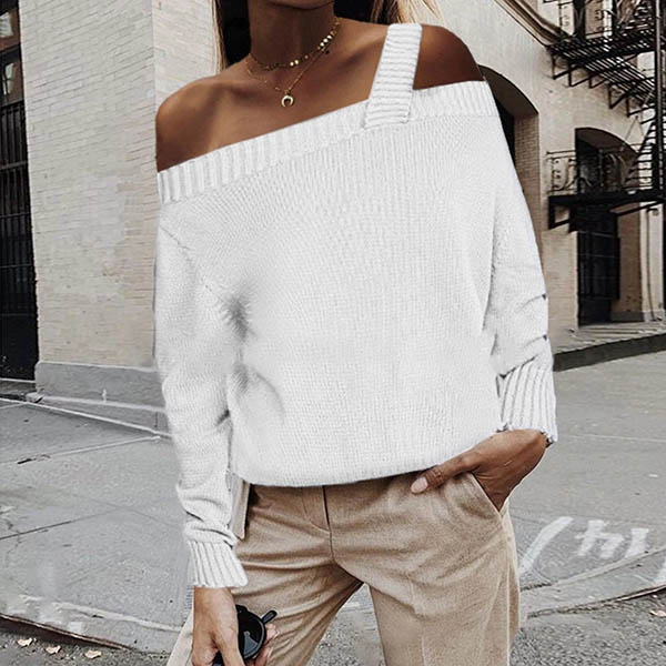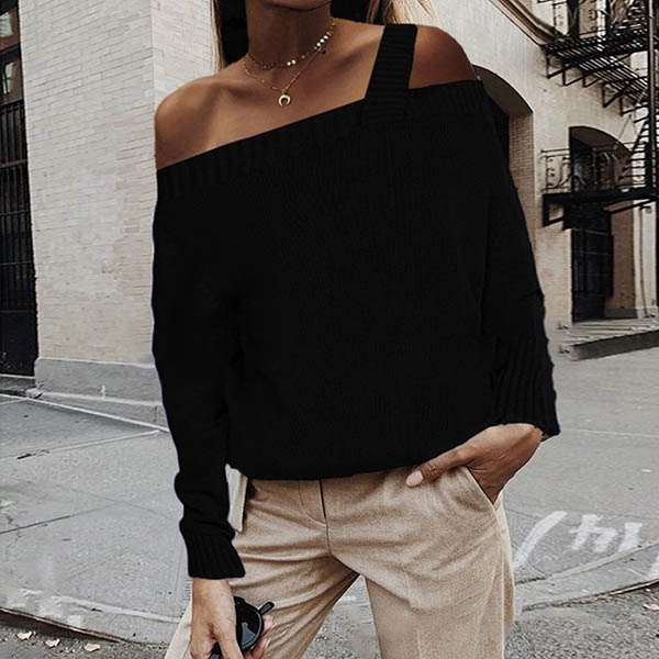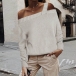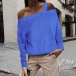 Sexy Off-shoulder Boat Neck Long Sleeve Solid Color Sweater