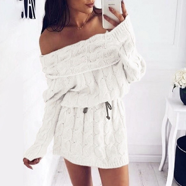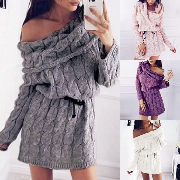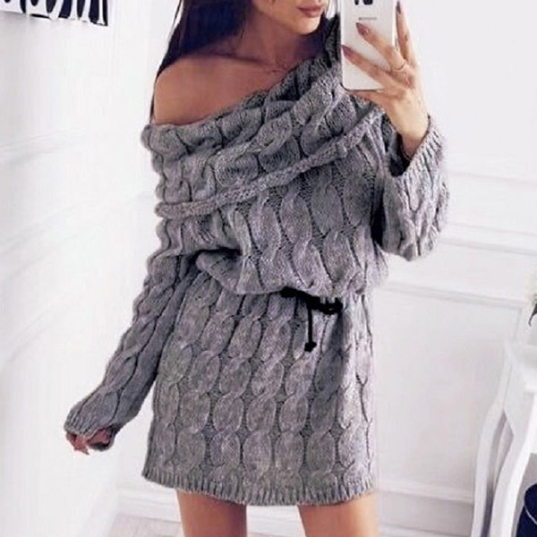 When the days get cold,this sweater dress is worth to be your new darling. It comes with a solid color,the off-shoulder boat neck design can lend you a dash of sexy and feminine vibes. When matching with your over-the-knee boots and stunning choker necklace,you can be a pleasant sight to draw more attention.