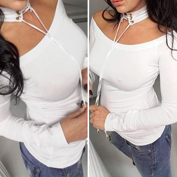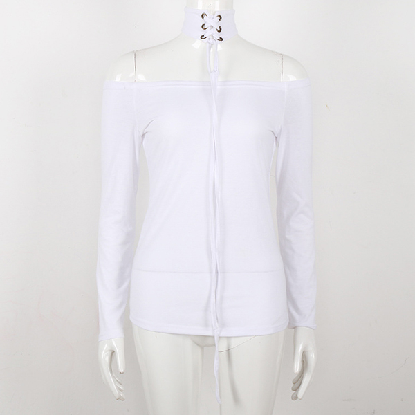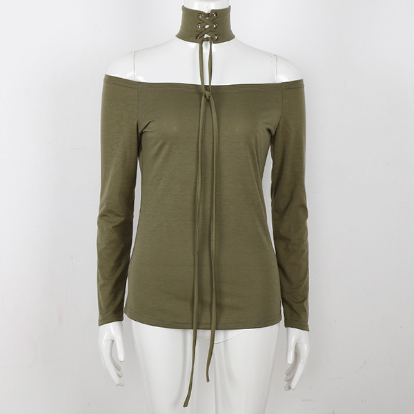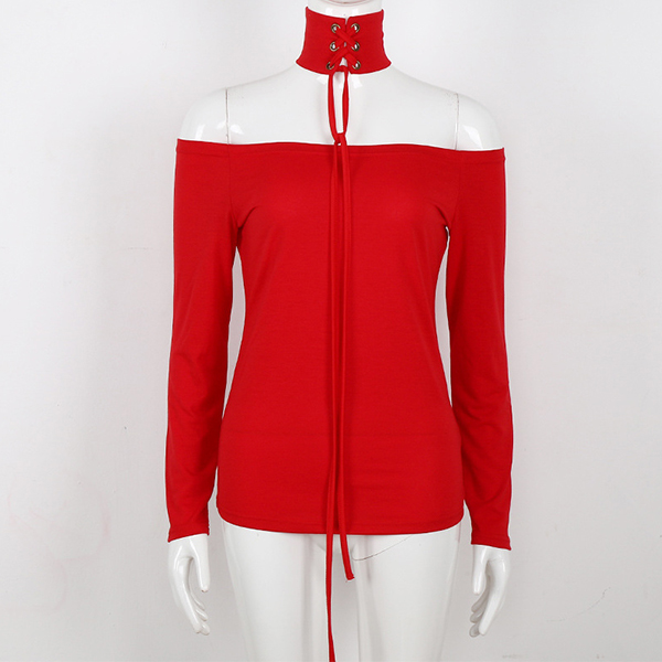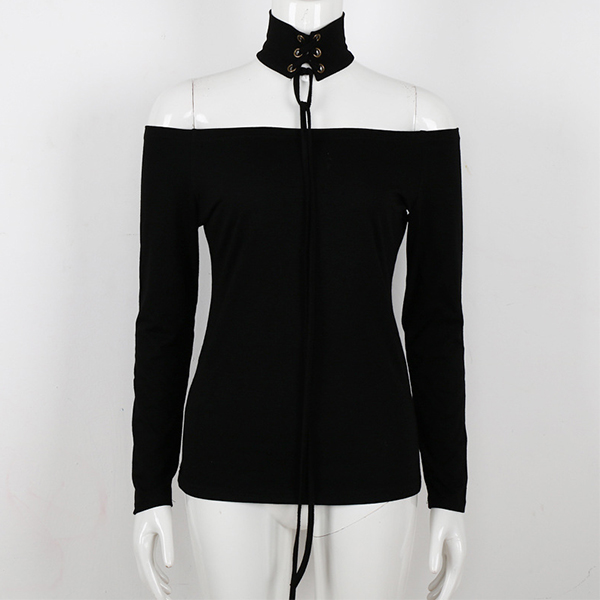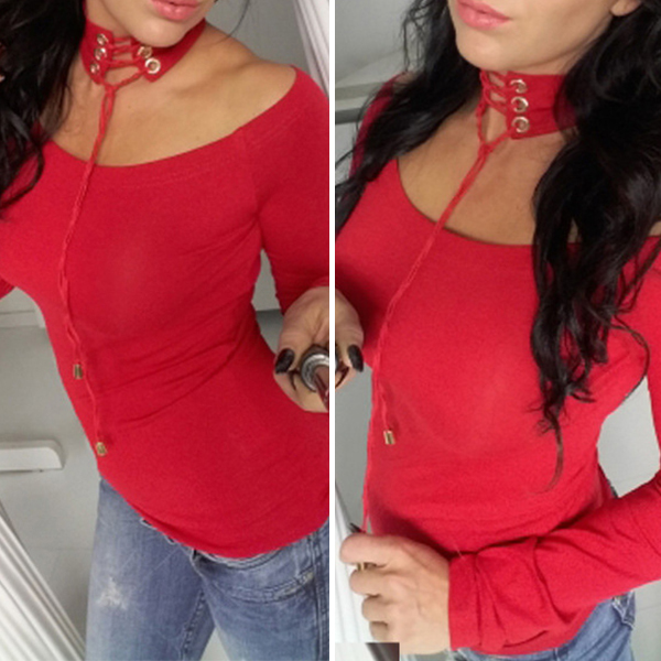 an off-shoulder wide neckline and a fit silhouette,cozy yet sexy. What's more,the matching choker necklace can