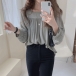 Combines of stylish and flirty vibes,this wonderful top is sure to arouse your attention. Solid color style,the off-shoulder boat neck design gives you the chance to showcase your charming shoulder and seductive collarbone. If adding a choker necklace,you can look more beautiful.