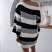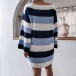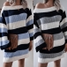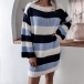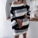 Sexy Off-shoulder Boat Neck Long Sleeve Striped Sweater Dress