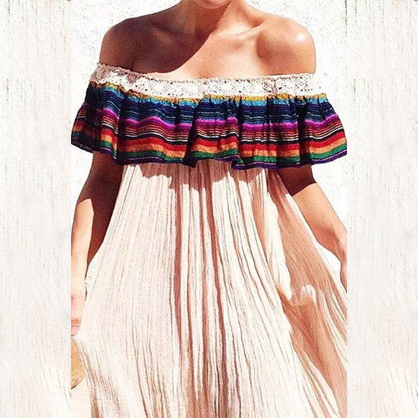 On the summer evening,walking on the beach with this dress would become a beautiful landscape.