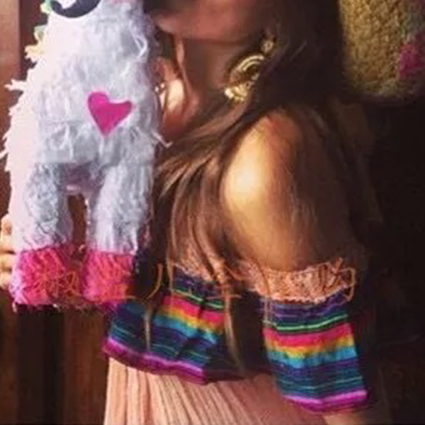 Its off-shoulder wide neckline with printed spliced design makes this piece charming and appealing,