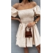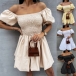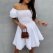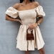 Sexy Off-shoulder Boat Neck Puff Sleeve High Waist Wrinkled Dress