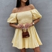 A perfect combination of sexy and flirty vibes,this dress can easily arouse your attention. Solid color style,the off-shoulder boat neck design can showcase your charming shoulder and seductive collarbone,while the puff sleeve and wrinkle details will add some extra charm. For a beautiful dating look,you can rest easy if you have this dress in your team.