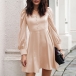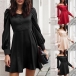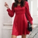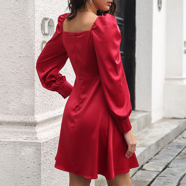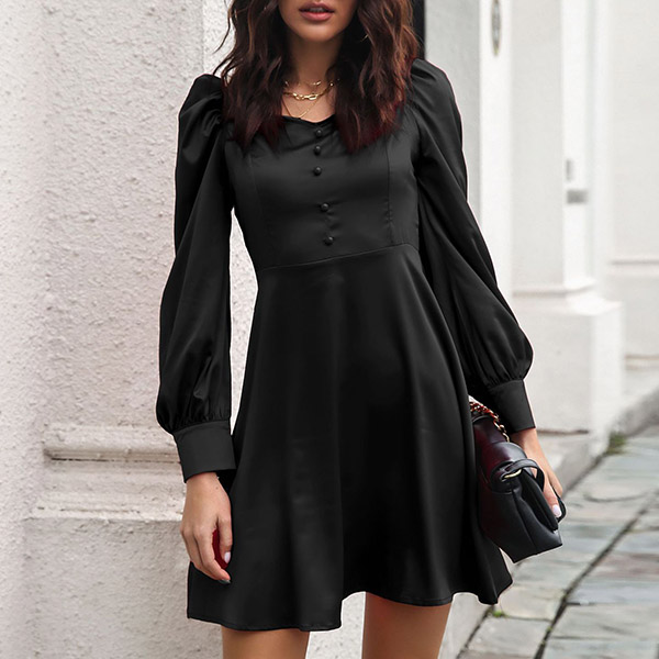 This dress comes with a solid color,which can lend you some elegant and generous vibes. Moreover,the puff sleeve and off-shoulder boat neck design will enhance its entire charm. You can consider adding a sparkle choker necklace to achieve for a more beautiful and charming appearance.
