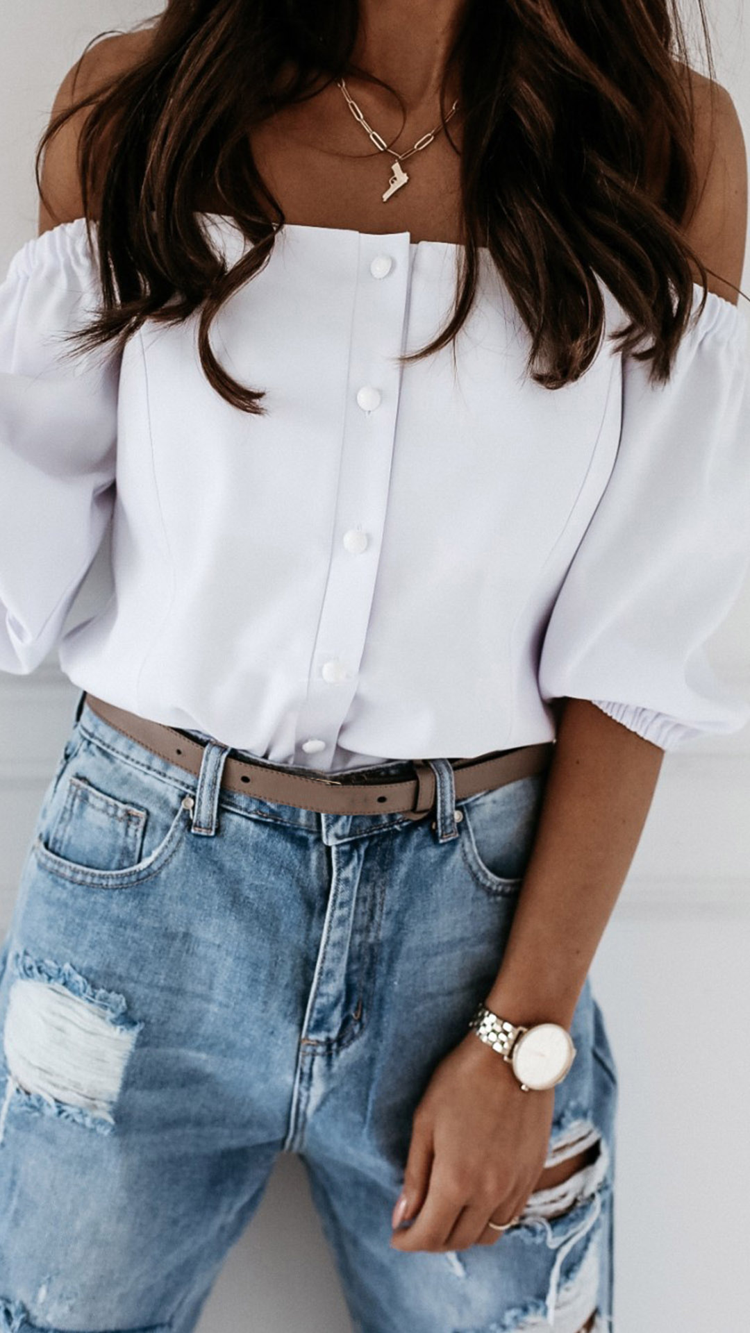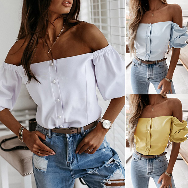 When you wanna flaunt off your charming shoulder and seductive collarbone,then you can make your eyes focused on this wonderful top. It comes with a solid color,the puff sleeve and boat neck design can lend you a dash of sexy,flirty yet feminine appeal. When adding a choker necklace,you can look more beautiful and stunning!