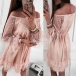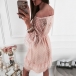 For a beautiful and charming dating look,you can just have a look at this dress. Comes with a sweet pink tone,finished with ruffle hem and off-shoulder boat neck design,this dress is sure to know how to express your charming feminine appeal. You can add a choker necklace for a more stunning look!