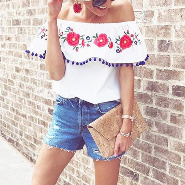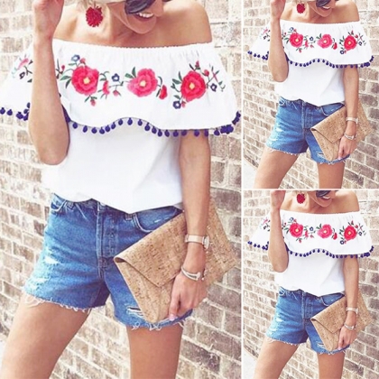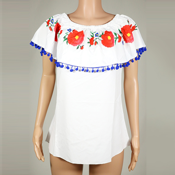 while the elastic wide neckline design adds some sexy and feminine flavor. What's more,the ruffle with printed and hairball