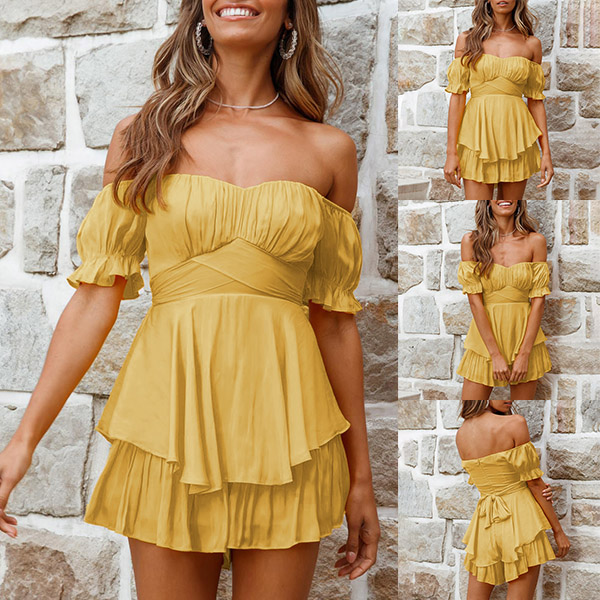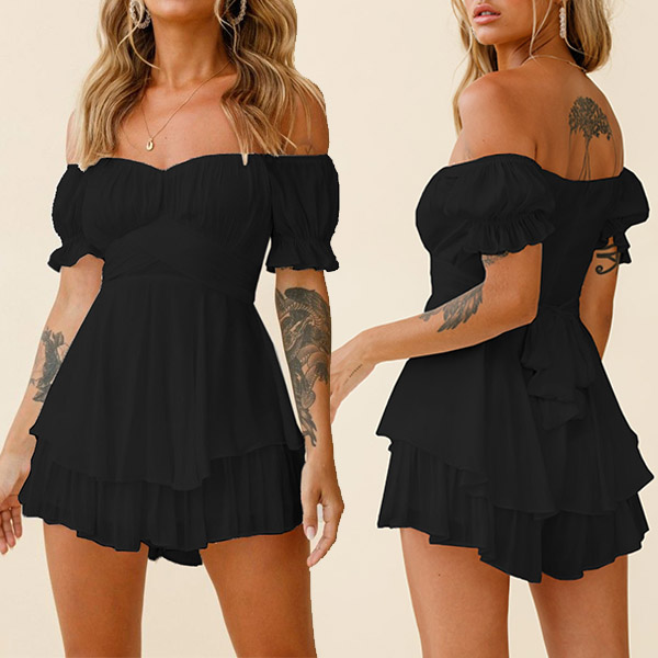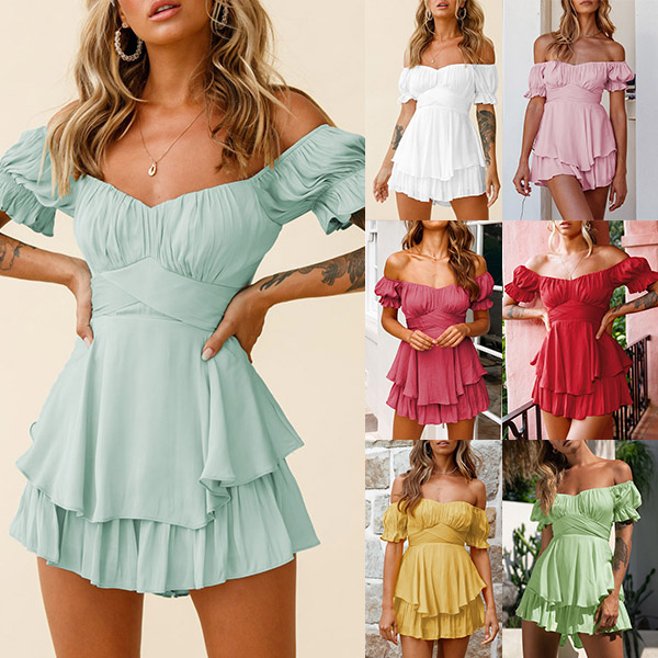 Hey,girls,you can just slip into a different style piece such as this romper to start your wonderful day. It comes with a solid color,the off-shoulder boat neck design will make you look sexy and flirty,while the high waist and clean silhouette design can portray your slender figure. In these summer days,you can trust in this piece to express your beauty and charm. Different colors for your optional.