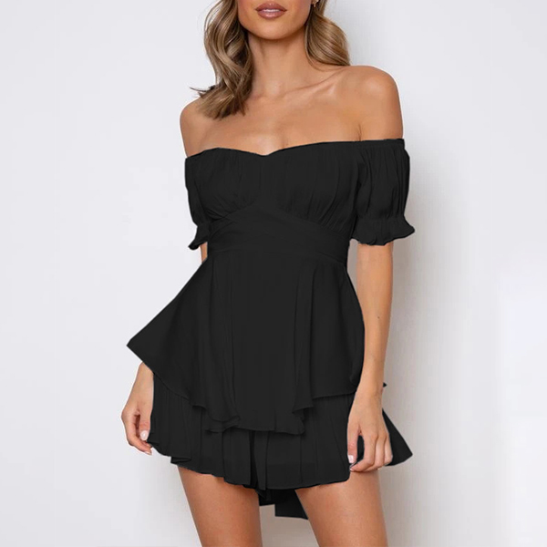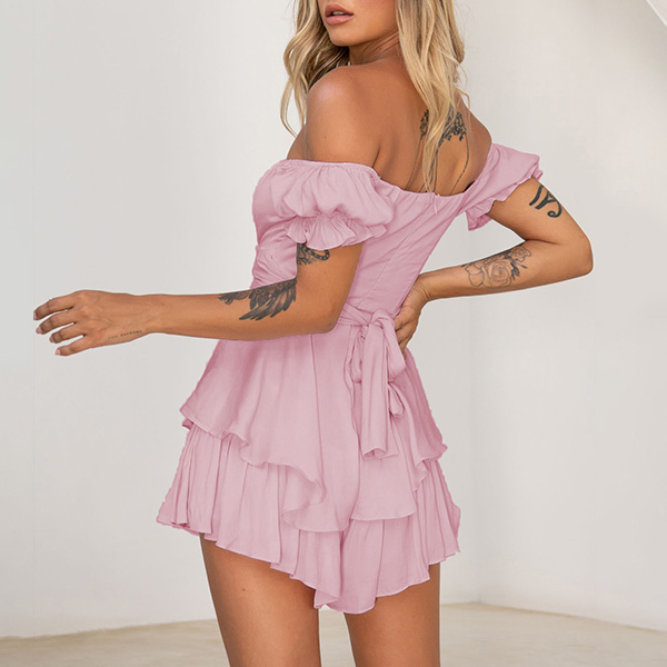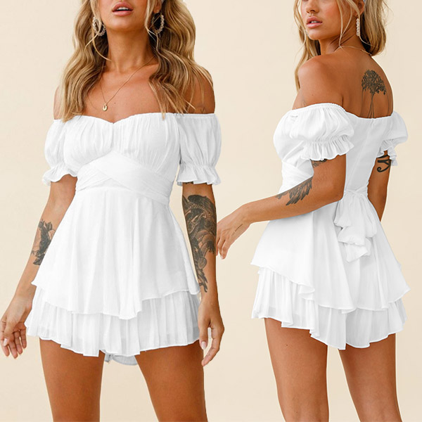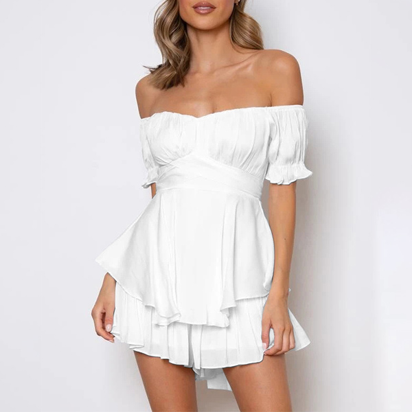 Sexy Off-shoulder Boat Neck Short Sleeve High Waist Romper