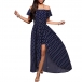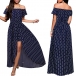 Sexy Off-shoulder Boat Neck Short Sleeve High Waist Slut Hem Dots Printed Dress