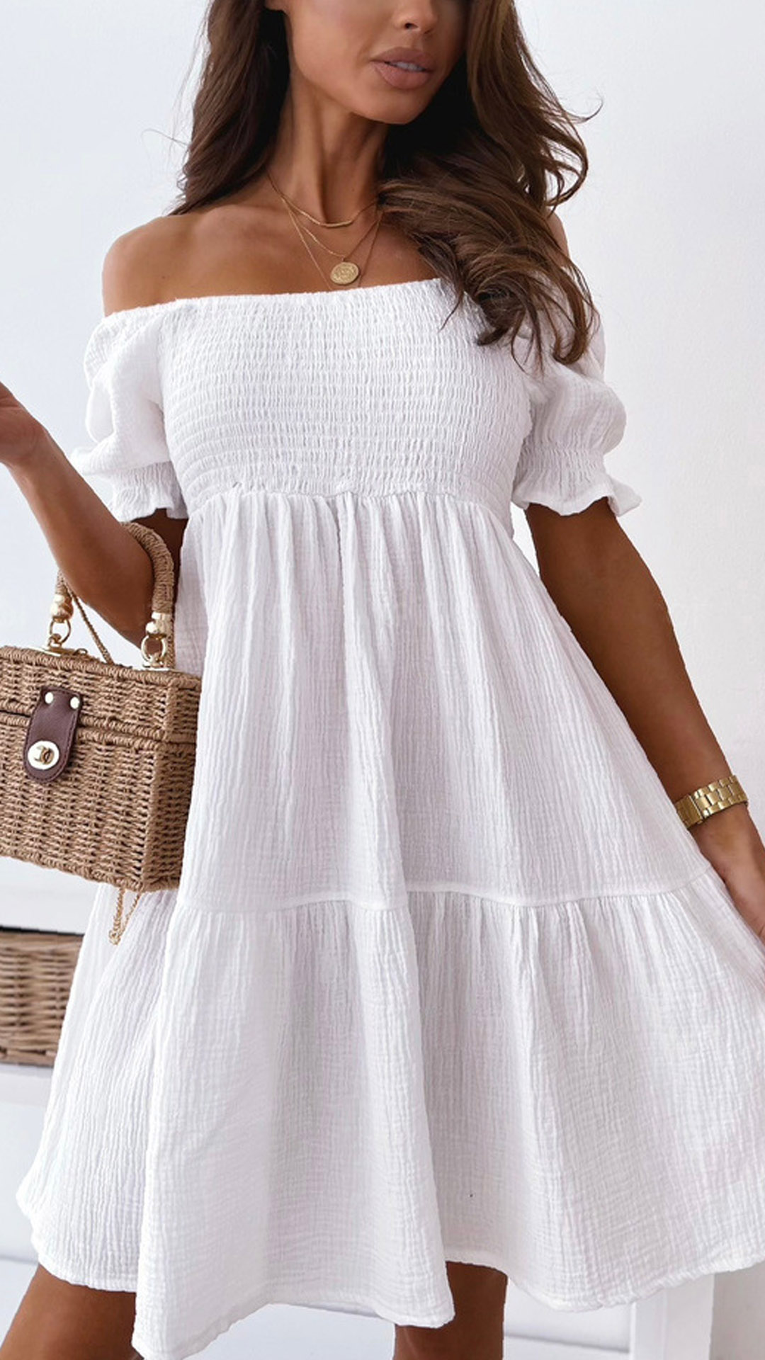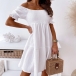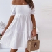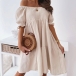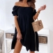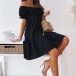 Sexy Off-shoulder Boat Neck Short Sleeve High Waist Solid Color Dress
