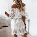 Sexy Off-shoulder Boat Neck Short Sleeve Lace Dress