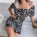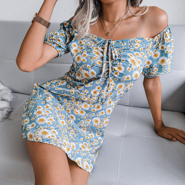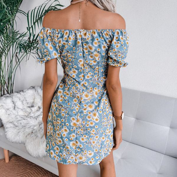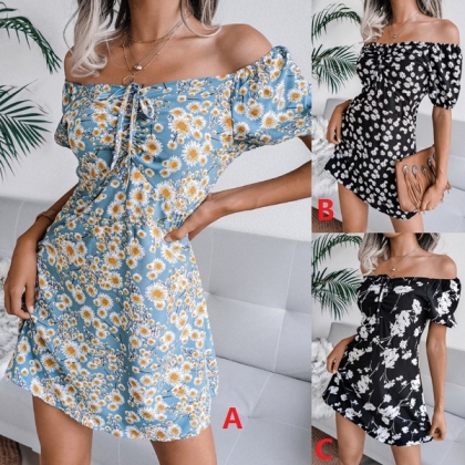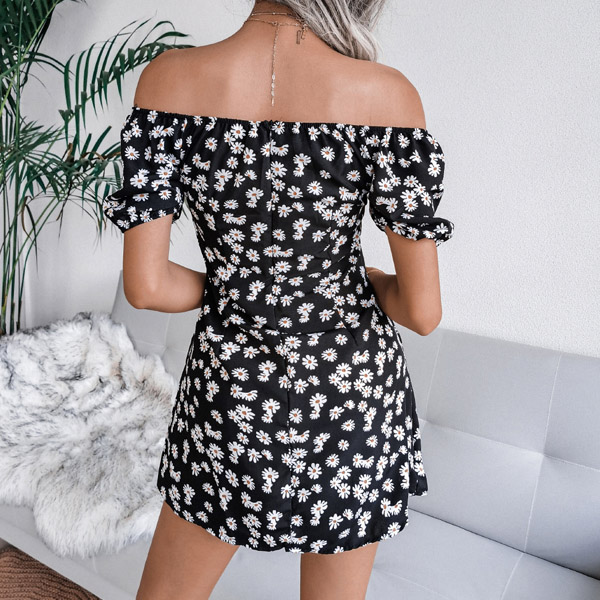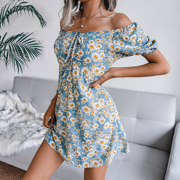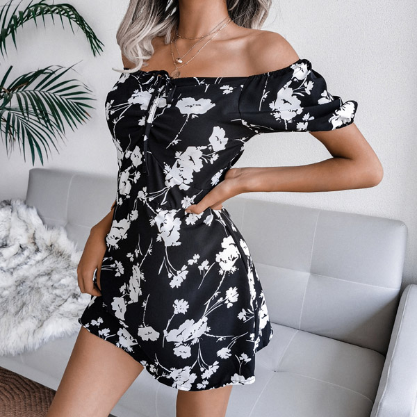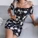 Sexy Off-shoulder Boat Neck Short Sleeve Printed Dress