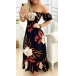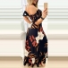 Sexy Off-shoulder Boat Neck Short Sleeve Ruffle Hem Slim Fit Printed Dress