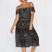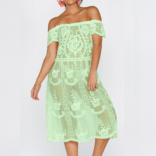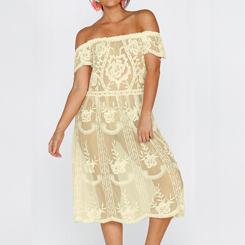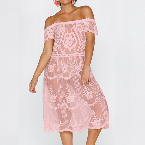 Sexy Off-shoulder Boat Neck Short Sleeve See-through Lace Dress