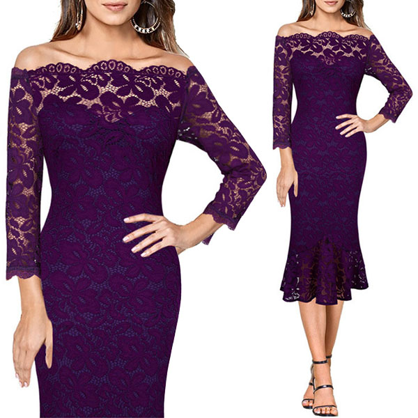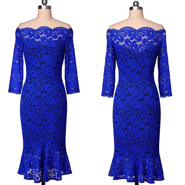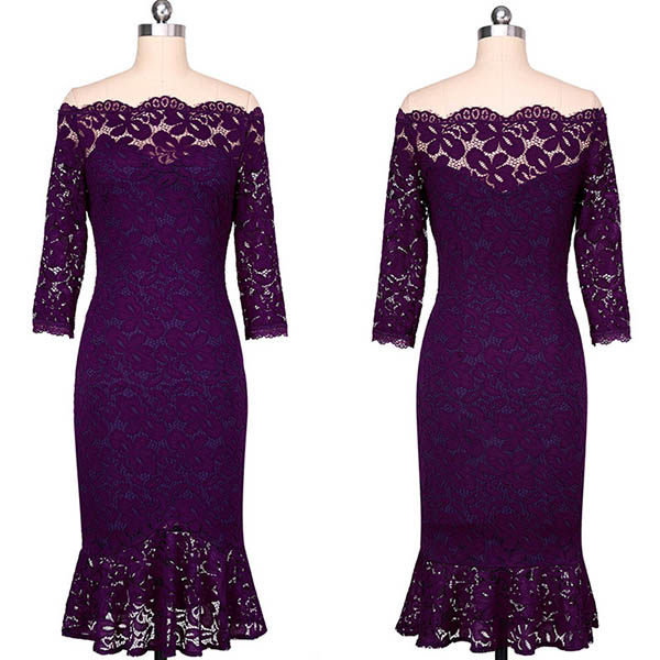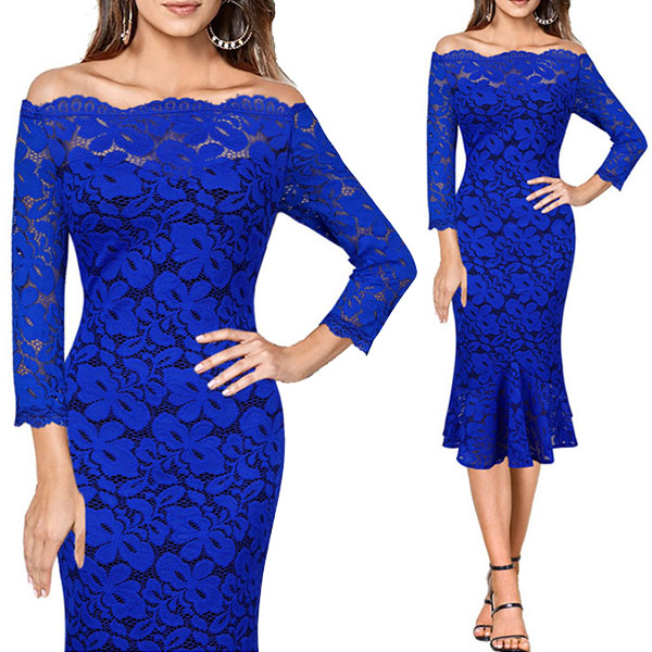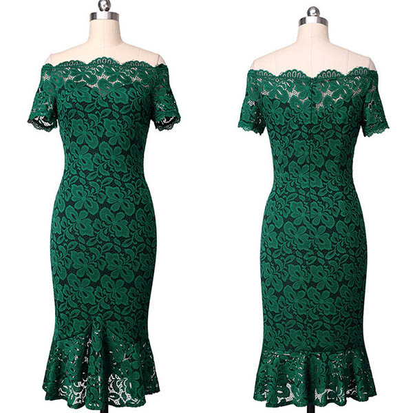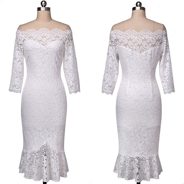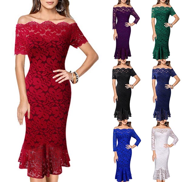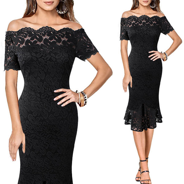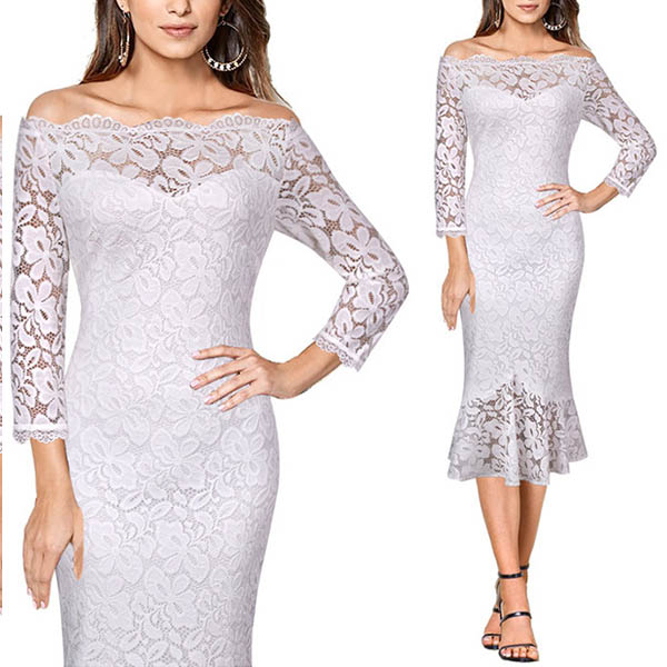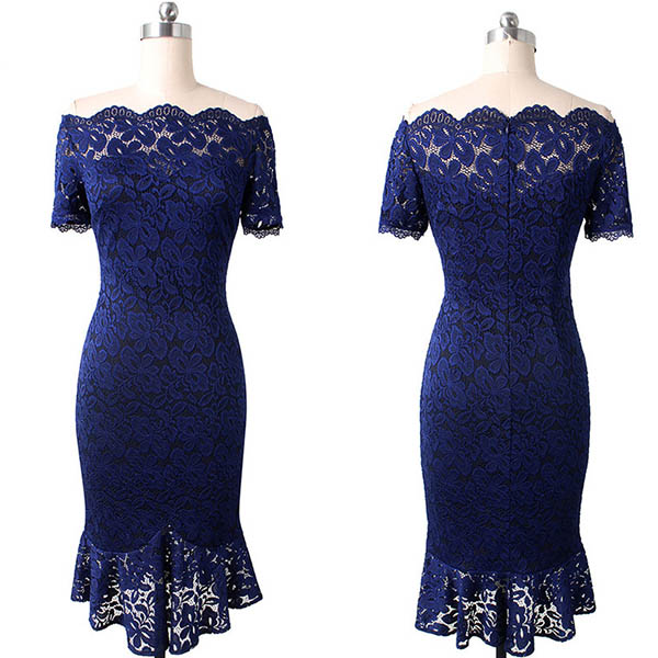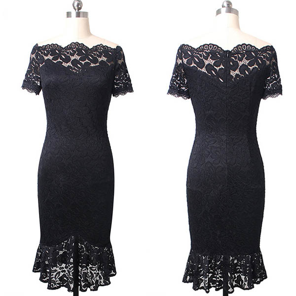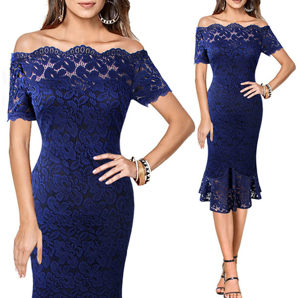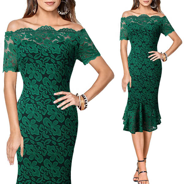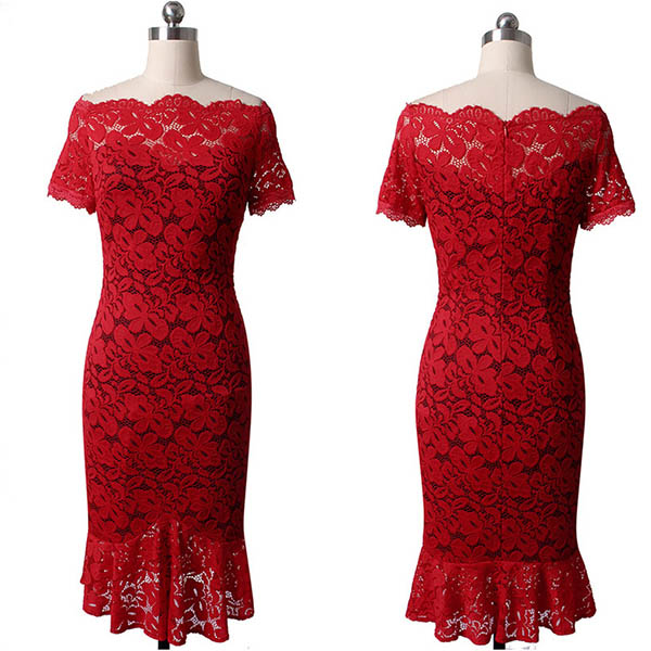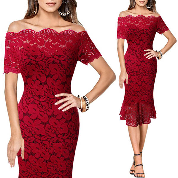 Sexy Off-shoulder Boat Neck Short Sleeve Slim Fit Lace Dress