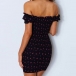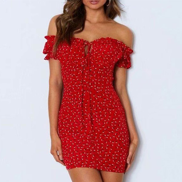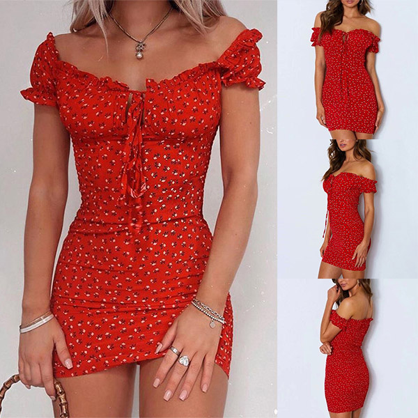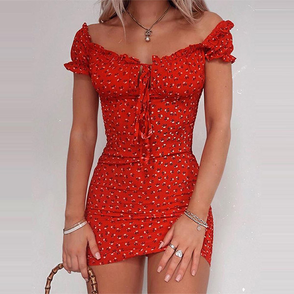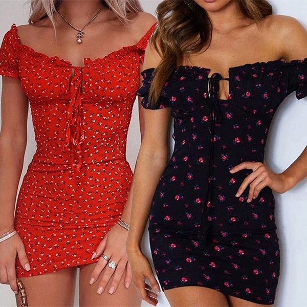 It is a good chance to exude your sexy and flirty side through this little stunner. It is designed with chic printed details,finished with a fit silhouette and boat neck design,this dress not only can showcase your seductive curve,but also can offer you a more alluring look. When adding a choker necklace,you can look more beautiful!