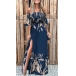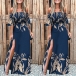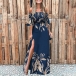 Sexy Off-shoulder Boat Neck Short Sleeve Slit Hem High Waist Printed Dress